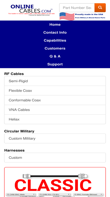 rf cables (microwave, semi-rigid, and flexible coaxial) and multiconductor assemblies. rf connectors (bnc, sma, mmcx, smc, tnc, and uhf) and mil-std-38999 connectors.