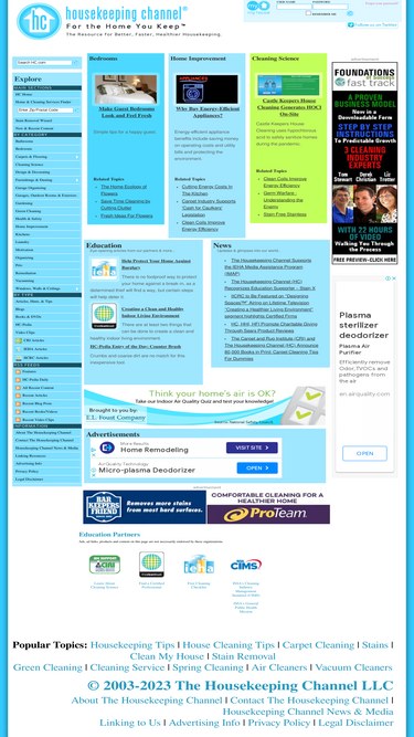 housekeeping channel (hc) is a comprehensive resource for 'better, faster, healthier' cleaning and housekeeping. hc exists to help you clean, protect and enhance your home environment using proven processes and practices from cleaning experts, professional cleaning services, environmental service professionals, and organizational and time-management consultants. the housekeeping channel strives to be the web's most comprehensive storehouse of information and resources to help households everywhere achieve a cleaner, more organized and healthier indoor environment. the site provides how-to tutorials, plus news and reviews regarding the latest innovations from the cleaning products industry to improve the home environment. resources include time-saving systems, tools and motivation for keeping a better house at the click of a mouse.