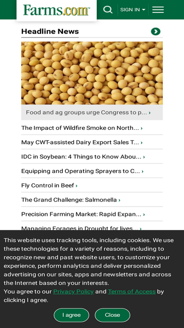 farms.com provides farmers, ranchers, agri-businesses and other agriculture producers, news and information on agriculture industry, live auctions of cattle, beef, dairy, swine, crops, poultry, cotton, soybean, farms equipment and many more agriculture products from cash crops to livestock.