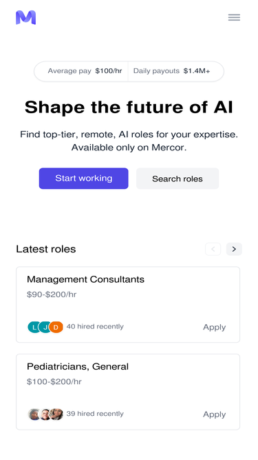 90%Find top-tier, remote, AI roles for your expertise. Available only on Mercor.