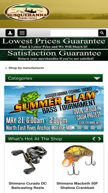 susquehanna fishing tackle is the best place on the planet to get your fishing tackle! expert knowledge, fast service, free shipping on orders over $50, and one of the biggest inventories of rods, reels, crankbaits, jerkbaits, soft baits, topwater lures, hooks, swimbaits, spinnerbaits, jigs, jig heads, line, sunglasses, apparel, tackle organizers and storage, and more!