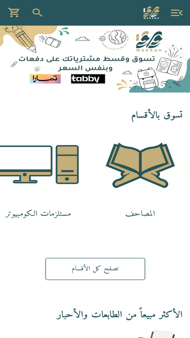 تسوق من وراقة وقسط مشترياتك | أدوات مكتبية | ادوات رسم | أدوات مدرسية و قرطاسية | مصاحف | كانفس | حامل كانفس | الوان اكريلك | الوان زيتية | فرش رسم | غلاف ملازم | ورق مقوى | ملف مخرم | ملف علاقي | مصاحف | احبار الطابعات | اجهزة التغليف الحراري | فرامات الورق | طابعات ابسون و HP | تسوق بالجملة | بالتجزئة | بالتقسيط.