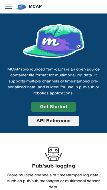 MCAP (pronounced "em-cap") is an open source container file format for multimodal log data. It supports multiple channels of timestamped pre-serialized data, and is ideal for use in pub/sub or robotics applications.