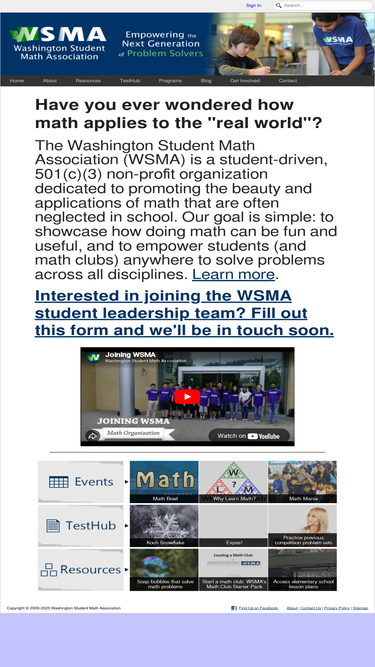 the washington student math association (wsma) is a student-run, non-profit organization designed to promote the uses of mathematics and build a network of math students and math clubs.