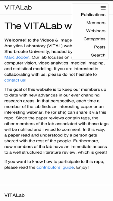 100%website of the vitalab (videos & images theory and analytics laboratory) of sherbrooke university.