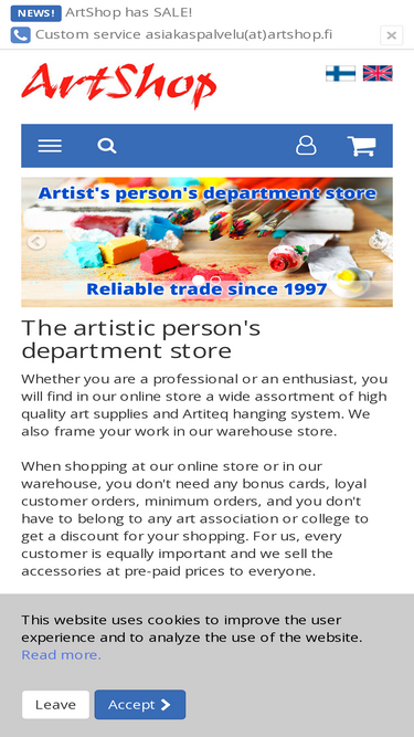 97%Taidepiste – laadukkaita taidetarvikkeita taiteilijoille ja harrastajille. Nopea toimitus koko Suomeen. Lue lisää: Taidepisteen sisäpiiri.