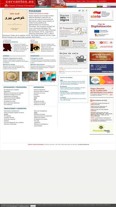 sede en internet del instituto cervantes creada para difundir la lengua española y la cultura en español: exposiciones, monográficos, obras de referencia, materiales didácticos para la clase de español, foros, debates, y un buscador especializado.