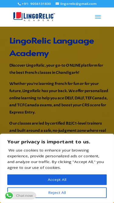 82%French Language Institute in Chandigarh, LingoRelic Language Academy provides online courses to learn French. For more information WhatsApp at 9056131830.