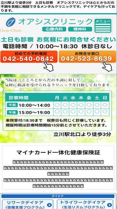 立川駅北口から徒歩3分、心療内科併設のオアシスカウンセリングルーム。臨床心理士・公認心理師による個人、夫婦、家族カウンセリングを提供します。認知行動療法やユング派療法、中国語対応可能なセッションも完備。土日・祝日も対応で通いやすい環境を実現。