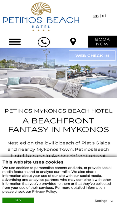 Petinos Beach Hotel in Mykonos is located on Platis Gialos Beach in Mykonos. The hotel is an exclusive beachfront retreat offering you luxury rooms and suites.