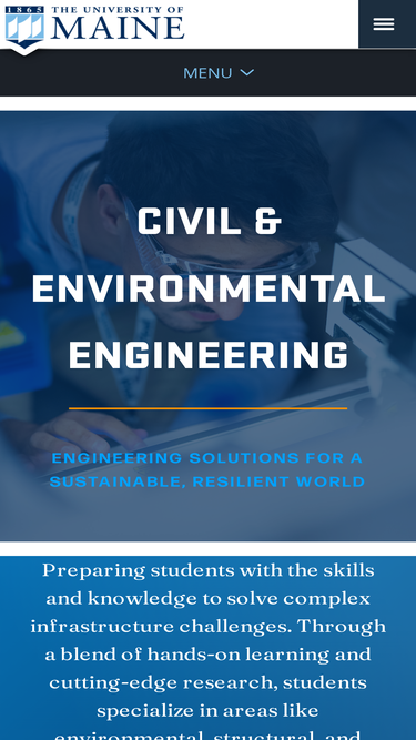 72%The Maine College of Engineering and Computing at the University of Maine is Maine’s only educational institution to offer 12 ABET accredited engineering, engineering technology and computer science degree programs. Our reputation is known world-wide, our facilities are world-class, and our research contributes significantly to scientific discoveries and economic development in Maine and beyond.