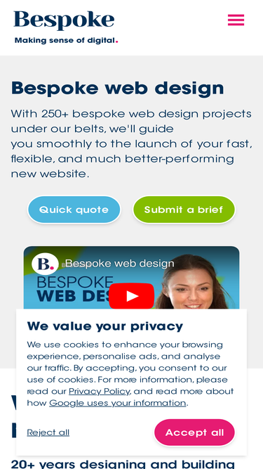 100%Bespoke web design agency. Core services: bespoke website design, B2B digital marketing, brand development & digital strategy workshops.