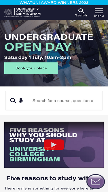 77%University College Birmingham has won University of the Year in the 2022 Whatuni Student Choice Awards (WUSCA), the leading higher education awards based solely on student choice.