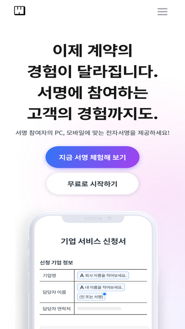 왙싸인은 문서 작성을 위한 에디터를 제공하여, 각종 신청서, 동의서 등 서명 업무를 지원하는 올인원 전자서명 서비스입니다.