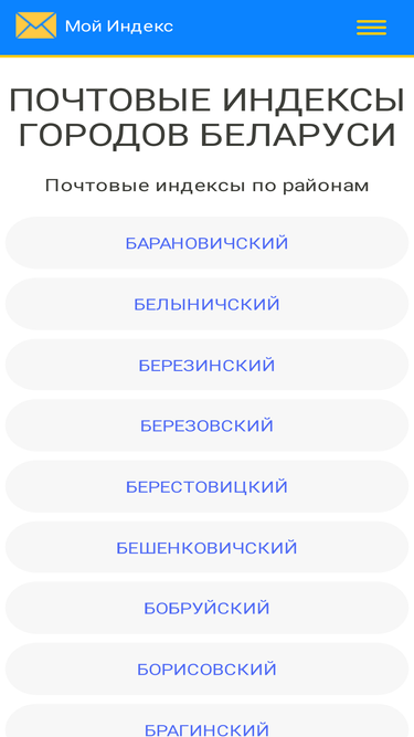78%Справочник почтовых индексов Республики Беларусь 2023 г. Добро пожаловать на «Bel-index» – ваш надежный путеводитель в мир почтовых индексов Беларуси! С нами вы сможете легко и быстро найти необходимый индекс, чтобы без проблем отправить письмо, посылку или документы в любой населенный пункт Республики Беларусь. Мы гордимся тем, что предоставляем полную информацию о почтовых Хотите узнать почтовый индекс улицы, города поселка или деревни? Воспользуйтесь самым полным справочником почтовых индексов Bel-index | Республика Беларусь - 2023 г.