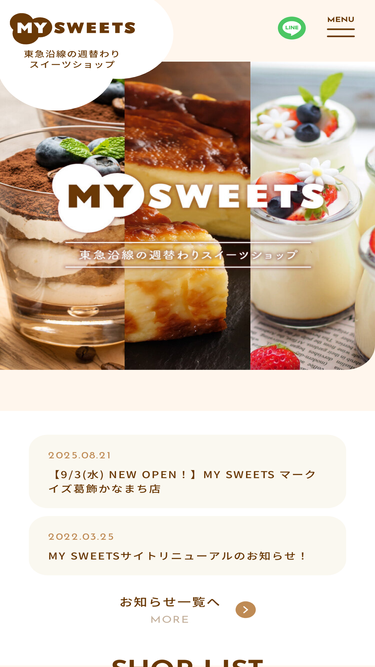 82%「話題性」や「旬」をキーワードにセレクトしたスイーツを提案する「MY SWEETS」。お客様とスイーツの新たな出会いの場として、バラエティ豊かなスイーツを週替わりで紹介するスイーツ専門店です。
