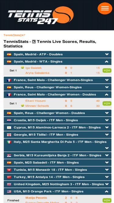 tennisstats 24/7 ➤ tennis statistics and results 🎾 live scores, atp & wta rankings ✅ h2h stats ✅ tennis predictions, player career profiles.
