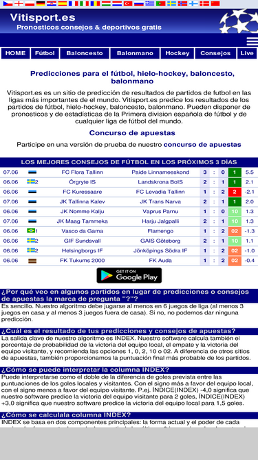 Vitisport ofrece predicciones deportivas, estadísticas y pronósticos basados en un modelo estadístico. Consulta los análisis de hoy.