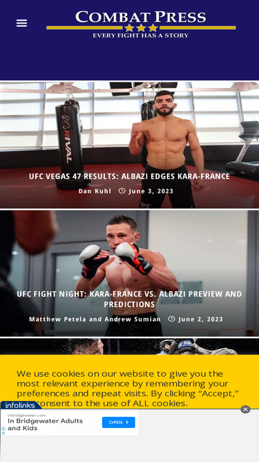 Stay up-to-date with the latest combat sports news. Get access to live blogs, videos, interviews, and more on FightBook MMA.