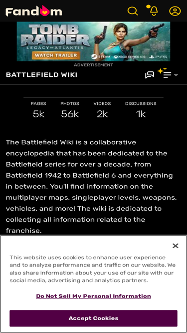 100%battlefield wiki is a comprehensive database focusing on the battlefield video game series. the wiki is dedicated to collecting all information related to the franchise, such as the games, weapons, levels, maps, characters and more!
