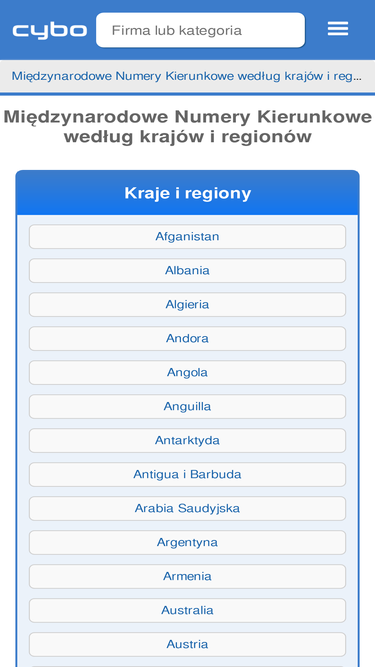 Znajdź Numery Kierunkowe na całym świecie przy pomocy Cybo.com, Ogólnoświatowego Katalogu Firm.