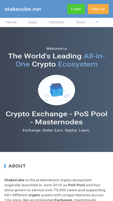 85%Discover StakeCube - your gateway to a versatile crypto ecosystem. Engage in seamless trading, masternode hosting, and a unique staking pool with our innovative Earn feature distributing rewards, even amidst open exchange orders. Your journey towards rewarding crypto experience starts here.