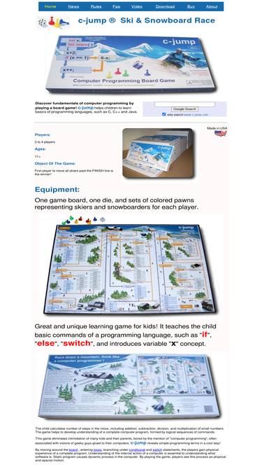 c-jump ski race board game helps children to learn programming languages c++ and java.