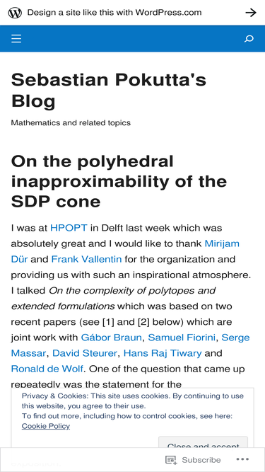 I was at HPOPT in Delft last week which was absolutely great and I would like to thank Mirijam Dür and Frank Vallentin for the organization and providing us with such an inspirational atmosphere. I…