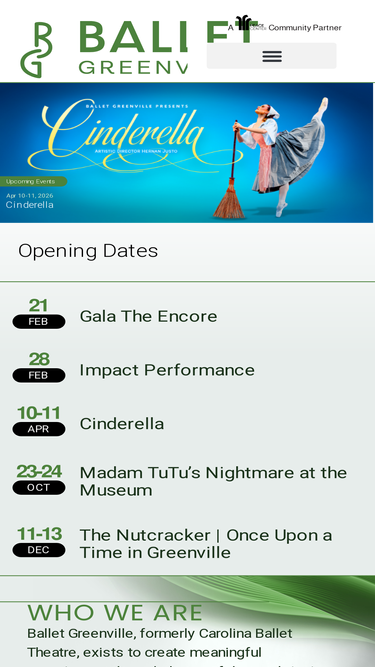 100%Ballet Greenville, formerly Carolina Ballet Theatre, exists to create meaningful experiences through the art of dance—bringing stories to life that educate,