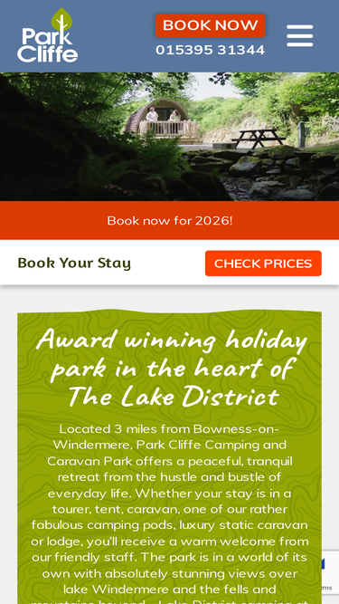 Park Cliffe Caravan & Camping in the Lake District near Windermere. Camping pods, shepherd's hut and static holiday caravans for hire.