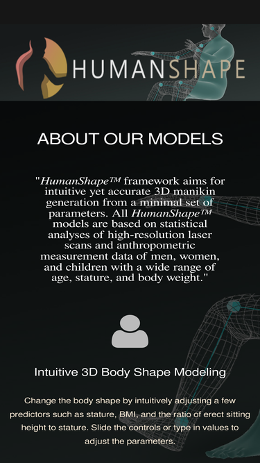REALISTIC HUMAN BODY SHAPE MODELER BASED ON REAL DATA DEVELOPED BY UNIVERSITY OF MICHIGAN TRANSPORTATION RESEARCH INSTITUTE