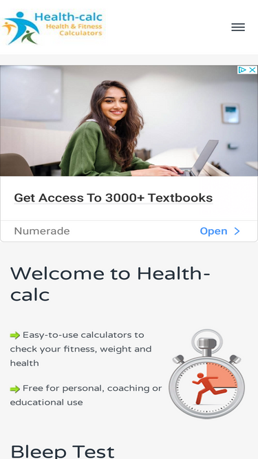 calculators for health, exercise and weight loss