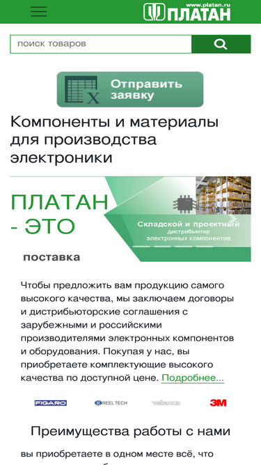 компания платан занимается розничной и оптовой поставкой электронных компонентов, измерительных приборов и электротехники. заказать товар и оформить счет можно в нашем интернет-магазине электронных компонентов, также заявки принимаются по электронной почте или по телефону.