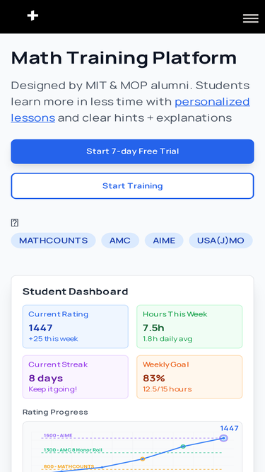 78%Master AMC 8, AMC 10, AMC 12 & MATHCOUNTS with MathDash's AI-powered math coaching platform. 10,000+ practice problems, personalized training, and expert coaching for math competition success.