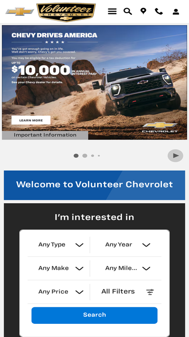 visit volunteer chevrolet for an amazing selection new chevrolet models and used vehicles from a variety of manufacturers. we also offer certified auto service and repair, competitive financing, and outstanding customer service.