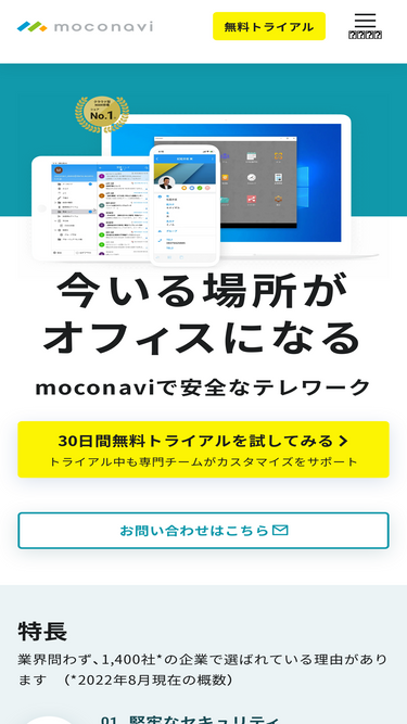 LGWAN端末を自宅から安全に遠隔操作。端末にデータを残さないため、テレワークにおける様々なトラブルを事前に回避。高度なセキュリティと操作性で、柔軟な働き方をサポートします。また、出張先でもスマホやタブレットで庁内のサイボウズOfficeやGaroonなどの業務アプリやシステムを見ることができ、効率的な業務が実現可能。