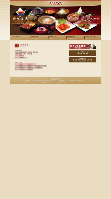 「株式会社 甘や」は、和風カフェレストラン「麻布茶房(あざぶさぼう)」や、チャイニーズカフェレストラン「lee tan tan cafe(リータンタンカフェ)」を経営する会社です。