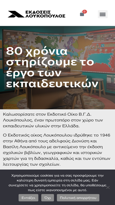 80 χρόνια στηρίζουμε το έργο των εκπαιδευτικών Καλωσορίσατε στον Εκδοτικό Οίκο Β.Γ.Δ. Λουκόπουλος, έναν πρωτοπόρο στον χώρο των εκπαιδευτικών υλικών στην Ελλάδα.Ο Εκδοτικός οίκος Λουκόπουλου ιδρύθηκε το 1946 στην Αθήνα από τους αδελφούς Διονύση και Βασίλη Λουκόπουλο με αντικείμενο την έκδοση σχολικών βιβλίων, γεωγραφικών και ιστορικών χαρτών για τη διδασκαλία, καθώς και των εντύπων λειτουργίας