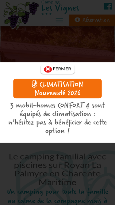 Alquiler de mobil-homes entre Royan y La Palmyre, en el camping Les Loges de Meschers. Encuentre alojamiento para sus futuras vacaciones junto al mar: mobil-home, chalet, caravana. Un camping dinámico con piscina, club infantil, terreno polideportivo, cama elástica, juegos hinchables, espectáculo y fiesta de la espuma.