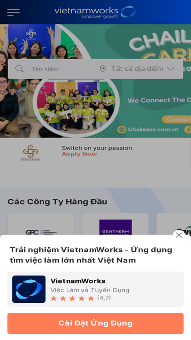 Nền tảng tuyển dụng lớn nhất tại Việt Nam với hơn 10.000 cơ hội việc làm mới nhất, chất lượng. Tiếp cận 10,000+ doanh nghiệp tuyển dụng uy tín. Tra cứu lương, thưởng, tư vấn nghề nghiệp tại VietnamWorks.
