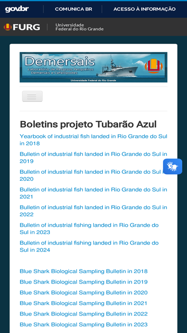 62%o laboratório de recursos pesqueiros demersais e cefalópodes está vinculado ao instituto de oceanografia da furg e atua, desde 1976, em atividades de ensino e pesquisa pesqueira e de monitoramento da pesca marinha industrial desembarcada na cidade de rio grande.