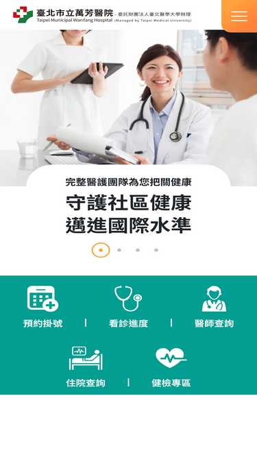100%臺北市立萬芳醫院-委託臺北醫學大學辦理地處昔日「萬隆」與「芳川」兩礦場,「萬芳」之名由此而來。自1989年動工興建,臺北市政府為減少每年新台幣五億元的公務預算支出,及藉助民間機構經營效率,決定將臺北市立萬芳醫院委託民間經營。歷經多次審慎的公告招標,1996年7月委託給臺北醫學大學經營,於1997年2月15日正式開幕服務市民,成為台北市第一家公辦民營的市立醫院。文山區為一典型的住宅文教區,且因應人口老化之趨勢發展,特將社區醫療設定為發展重點之一,並堅守對社區的承諾,期待成為一所服務、品質、效率俱優的公辦民營醫學中心,擔負公衛責任,服務範圍由台北市南區、新北市周邊、醫療偏遠地區、更擴及服務至國際醫療。