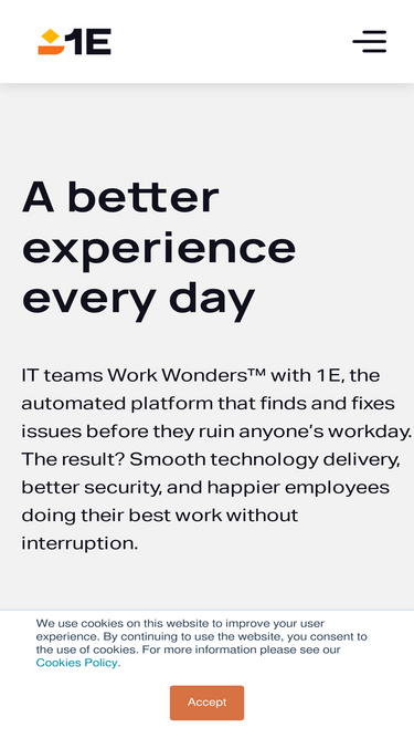 1E helps IT teams improve end user experience, tighten security, reduce costs, and evolve operations from cost center to strategic enabler.