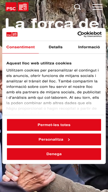 94%Pàgina del 15è Congrés del PSC, Partit dels Socialistes de Catalunya: documents, directes, jornades, participació, història i més.