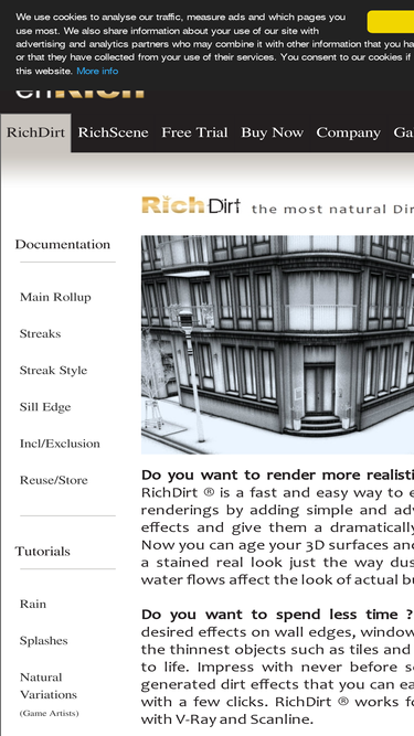 enrich pro provides the 3d artist with tools to enrich renderings in a natural, pleasing and convincing way. richdirt by enrich pro is the world´s leading dirt solution. richdirt works for 3ds max with v-ray and mental ray.