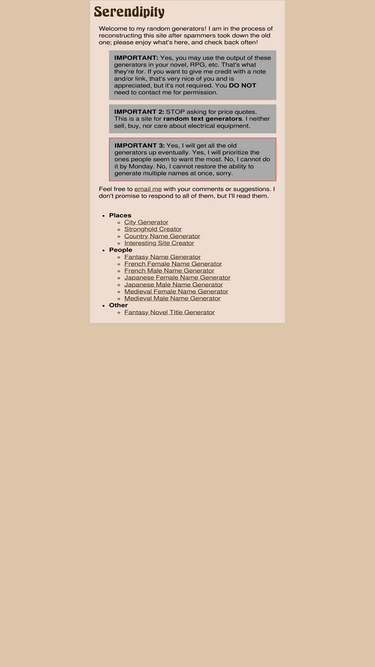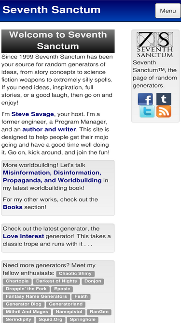 A site of generators to randomly produce concepts, characters, and descriptions for stories, role-playing games, and art, as well as have fun and alleviate creative blocks.