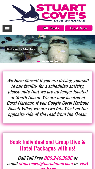 Stuart Cove's Dive Bahamas is Nassau's leading full service dive resort operating a fleet of seven dive vessels, with five of the boats over 40 feet in length. Stuart Cove's is in the ideal physical location to take advantage of the diverse underwater geological formations