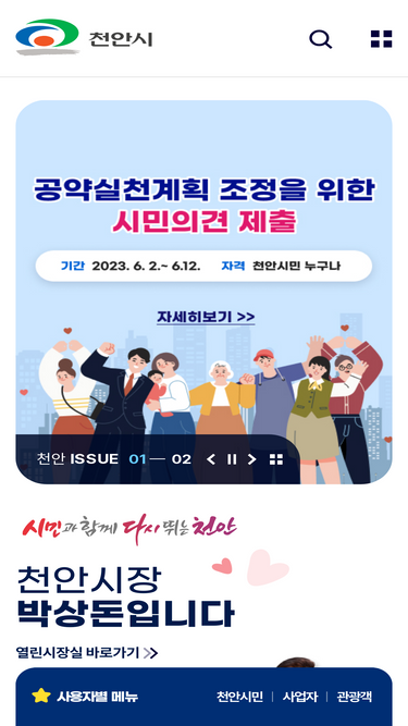 100%현재 천안시 홈페이지 리뉴얼 작업으로 인해 서비스가 일시 중단되었습니다. 빠른 시간 내로 서비스를 제공하도록 하겠습니다. 이용에 불편을 드려서 죄송합니다.