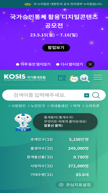 코시스, 통계청이 제공하는 원스톱 통계 서비스, 국가승인통계, 국제통계, 북한통계, e-지방지표, 통계시각화콘텐츠, 온라인간행물 등 제공