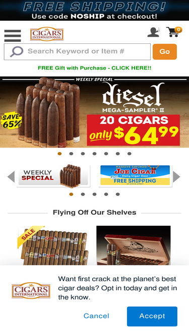 cigar.com is the best place to buy premium cigars online! free shipping on all the top cigars, samplers, humidors, & more with our elite advantage club.